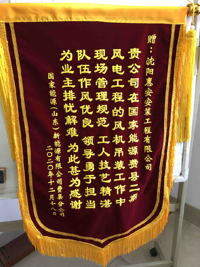 国家能源(山东)新能源有限公司费县分公司送来感谢锦旗